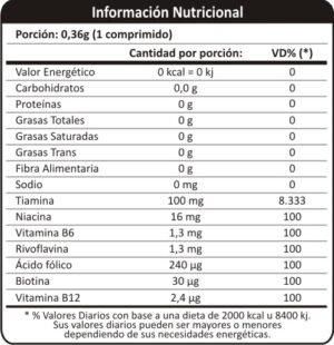 La VITAMINA B12 (Cianocobalamina) es un nutriente que ayuda a mantener la salud de las neuronas y la sangre. Contribuye a la formación del material genético en todas las células (ADN)