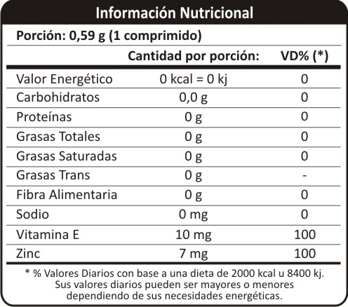 Ingredientes: Ginseng extracto seco, Sulfato de Zinc, Vitamina E acetato