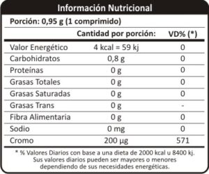 Pero solo contiene de cromo asimilable 200 micro centigramos.