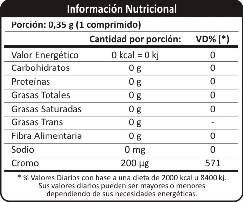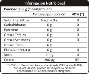 Pero solo contiene de cromo asimilable 200 micro centigramos.